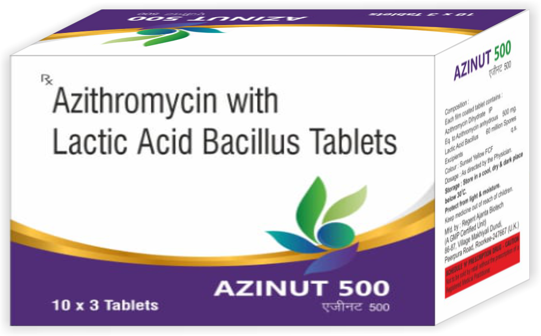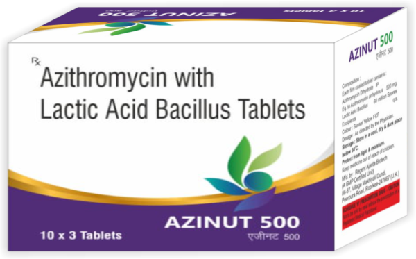 Tablet: Azithromycin 500mg + Lactic Acid Bacillus 60 Million Spores Tablet