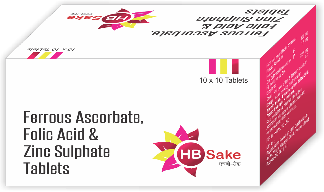Tablet:Ferrous Ascorbate 100 mg + Folic Acid 1.5 mg + Zinc Sulphate Mono 22.5 mg Tablet