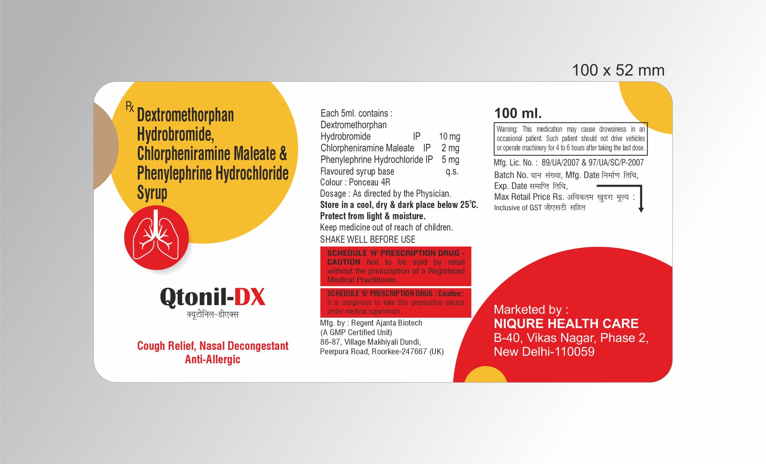 Syrup: Dextromenthorphan 10mg + Cpm 2mg + Phenylephrine 5 mg syrup