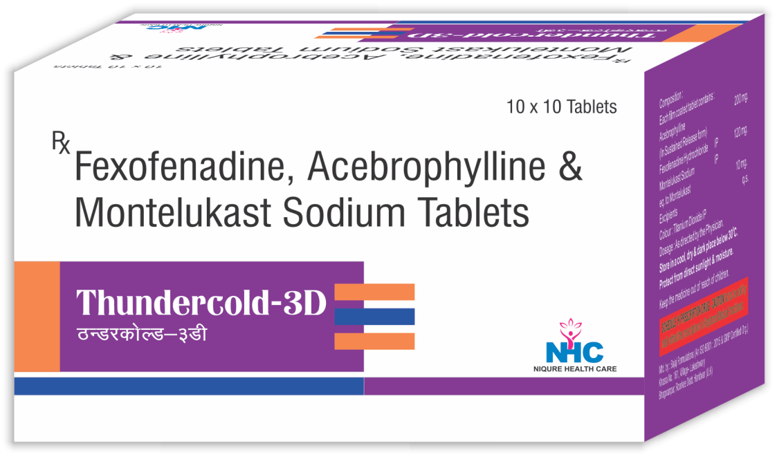 Tablet : Fexofenadine Hydro 120 mg + Acebrophyline 200 mg + Montelukast Sodium 10 mg Tablet